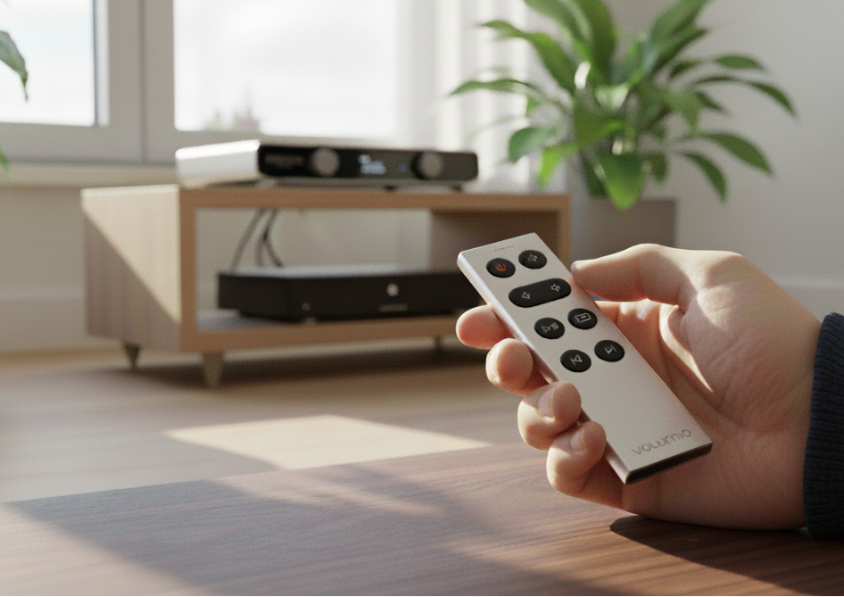 使用 Remoto 紅外線遙控器,即可完全掌控您的 Volumio Preciso DAC。 Remoto 專為精準便捷的 DAC 操控而設計,